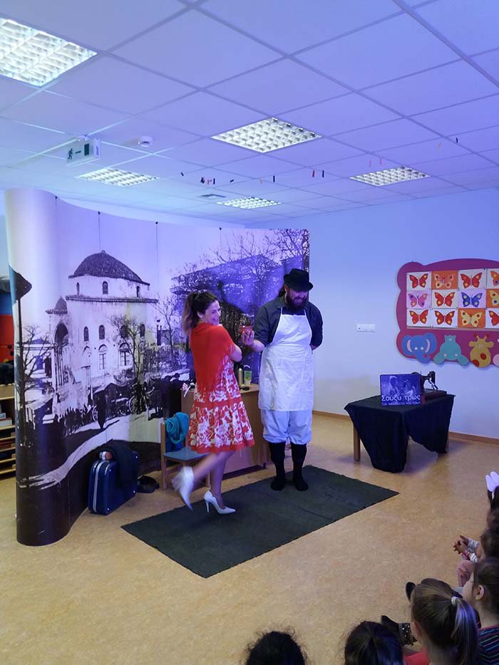 Οι μικροί μας φίλοι είχαν την ευκαιρία να γνωρίσουν με βιωματικό τρόπο επαγγέλματα που τείνουν να εξαλειφθούν άλλα αποτελούν σημαντικό κομμάτι της παράδοσής μας, όπως αυτά του λούστρου, του μπαρμπέρη, του νερουλά, του γαλατά, του καφετζή, της μοδίστρας, κα.! Με μεγάλη τους χαρά τα νήπιά μας ανταποκρίθηκαν στο κάλεσμα των ηθοποιών να αναλάβουν και αυτά το δικό τους ρόλο στην αναβίωση των επαγγελμάτων!!!